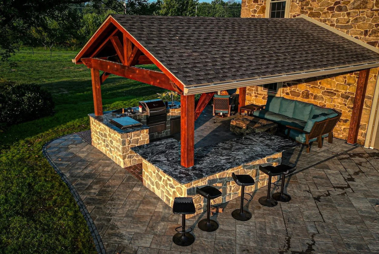 Owner Reuben Stoltzfus began working in landscaping before expanding into hardscaping, decks, and structural outdoor projects as demand grew. What started as landscape work quickly evolved into something larger as homeowners began asking for patios, outdoor kitchens, roof structures, and complete outdoor living environments.